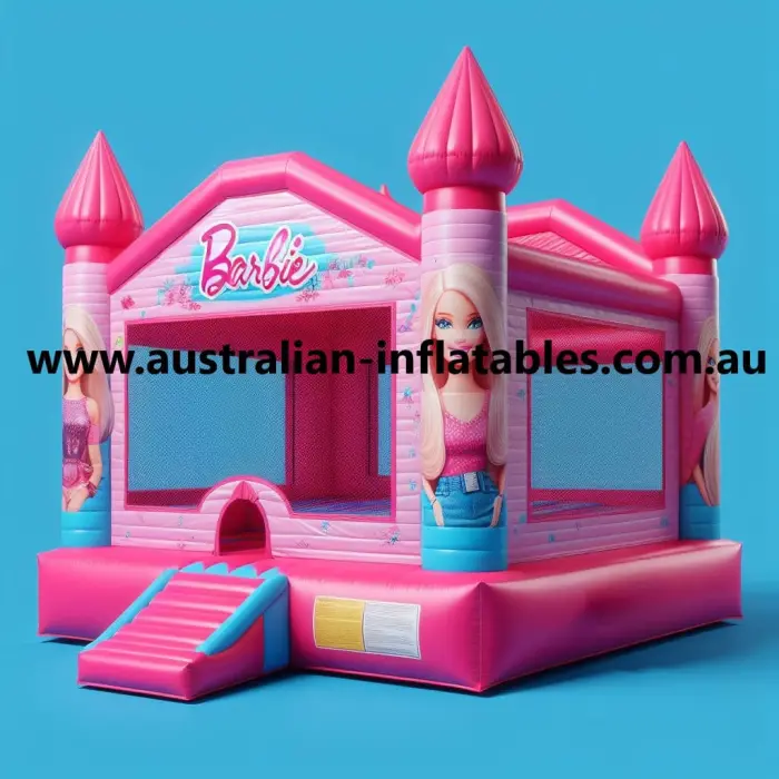 • The Barbie Jumping Castle is a stunning pink paradise that stands out from Australian Inflatables, designed to make every young doll enthusiast’s heart sing. Made with the finest materials, this castle is as sturdy as it is stylish, ready to host countless parties and playdates.